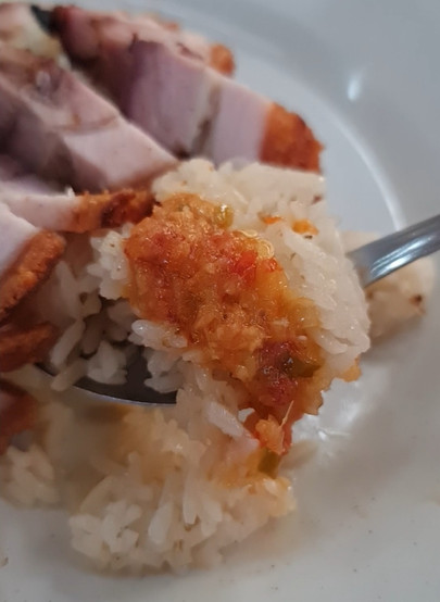 The chunky roast pork is really well-glazed, tender, and juicy, with just the right lean-to-fat ratio; and it's not overly sweet. And the pork fat is roasted till it's so soft that it's ready to melt in my mouth (which it did actually).