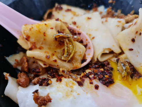 As with any delicious Malaysian food that's built a respectable fanfare around it, this "dry" version of Mee Hoon Kueh also made its way down from Peninsula Malaysia to our little island-state, and it turned out to be a runaway success.